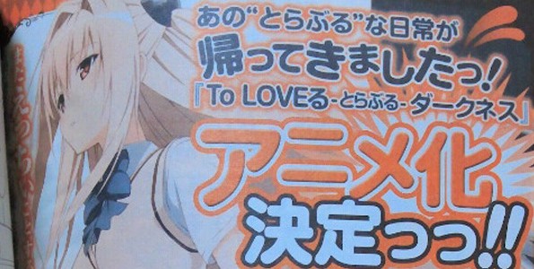 ส่วนข่าวดีอีกเรื่องนึงของแฟนๆ การ์ตูนอภิมหาเซอร์วิสแห่งยุคนี้ To LOVE-Ru Darkness นั่นเอง!!! ซึ่งก็ได้คอนเฟิร์มจากนิติยสาร Jump Square ฉบับเดือน 5 แล้วว่าจะทำออกมาเป็น TV Series ให้ได้ดูกันยาวๆ สำหรับเรื่องนี้แค่ชื่อก็คงเข้าใจกันแล้วว่ามันจะเป็นการ์ตูนที่ดีขนาดไหน เอาเป็นว่าเรามารอคอยสองเรื่องนี้กันอย่างใจจดใจจ่อกันดีกว่า